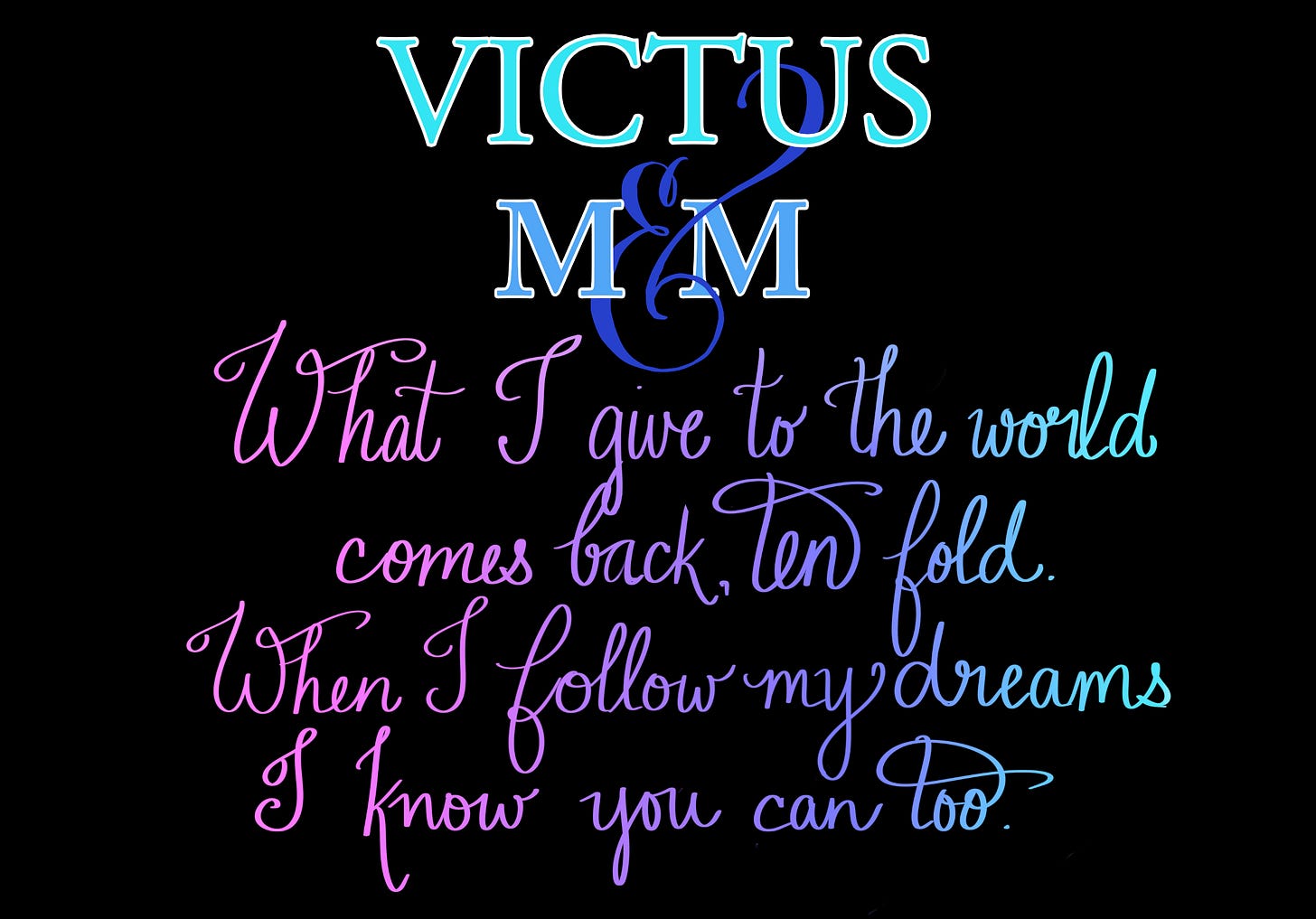 “What I give to the world comes back, ten-fold. When I follow my dreams, I know you can, too.”
